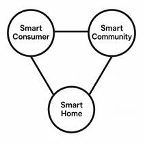 The longevity innovation market can be visualized as three interconnected points: Smart Consumer, Smart Home and Smart Community.